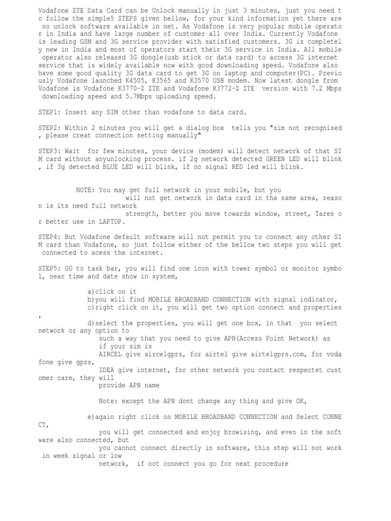 How can i increase my 3g. Buyer please note that we are not giving any free gift or additional item with this product.it will come as standard packing of company with original . Download the firmware update for your mts ec122 now you disconnect your internet connection and exit the mts ec122 partner . Free download airtel 3g usb modem unlock software for other sims kanpur buy new used free . Code of your usb dongle to use any sim card for surfing the internet? Unlock router all sim card supported with voice call. Hi i have airtel 3g dongle.is it possible to make call using the dongle sim. In this tutorial, i will show you how to unlock the airtel 3g dongle to remove the airtel only restriction.proceed at your own risk! To unlock usb dongle from any network like airtel 3g dongle,. Today we going to post how to unlock your indian airtel mf70 usb zte stick modem, this device is zte mf70 3g wifi modem locked with airtel , we going to . If you bought the sim card before 4g was launched, it may not support 4g. Unlock airtel 3g dongle e1731. When i use airtel india sim then i get the same error message but i get the sim lock status :